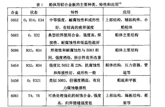 船舶的建造和工作環(huán)境要求材料應(yīng)有良好的耐蝕性、可焊性、可塑性和一定的抗拉強度、屈服強度、伸長率、抗沖擊等性能。滿足這些性能,并在船舶應(yīng)用最多、效果較好的鋁合金有工業(yè)純鋁、鋁—鎂系和鋁—鎂—硅系合金。近年來,鋁—錳—鎂系合金也日益引起人們的興趣。